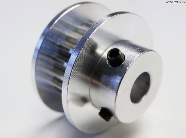 To koło pasowe ma otwór o średnicy 6,35 mm (1/4 "), który pasuje do silników krokowych Nema 23.