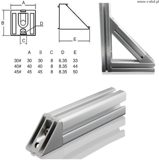 Łącznik 45 stopni do profili 30x30