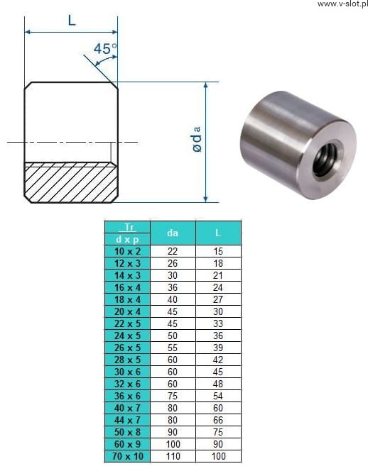 Nakrętka trapezowa 12x3 cylindryczna stalowa CNC