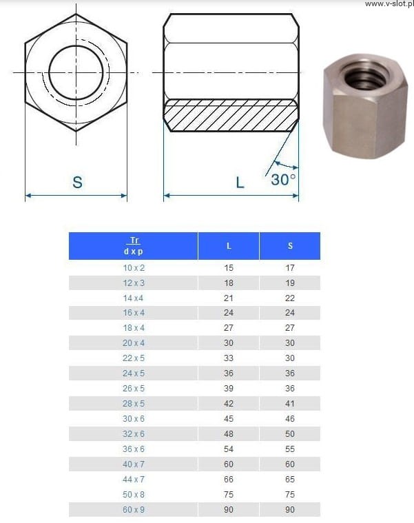 Nakrętka trapezowa 24x5 sześciokątna stalowa