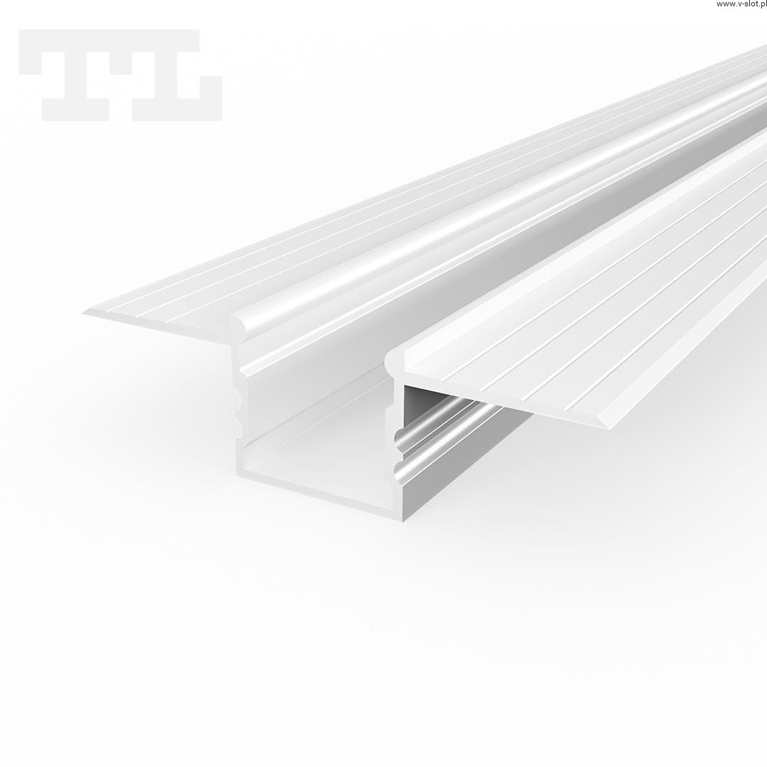 Profil LED podtynkowy P18-3 3mb w kolorze białym, anodowany, to elegancka listwa aluminiowa, idealna do montażu w wyfrezowanych lub wyciętych otworach w płytach gipsowo-kartonowych. P18-3 sprawdzi się doskonale na różnorodnych powierzchniach, takich jak ściany czy sufity. Dzięki obniżonym skrzydełkom możliwe jest estetyczne zaciągnięcie ich gipsem, pozostawiając równą powierzchnię.