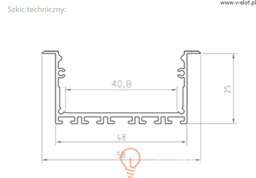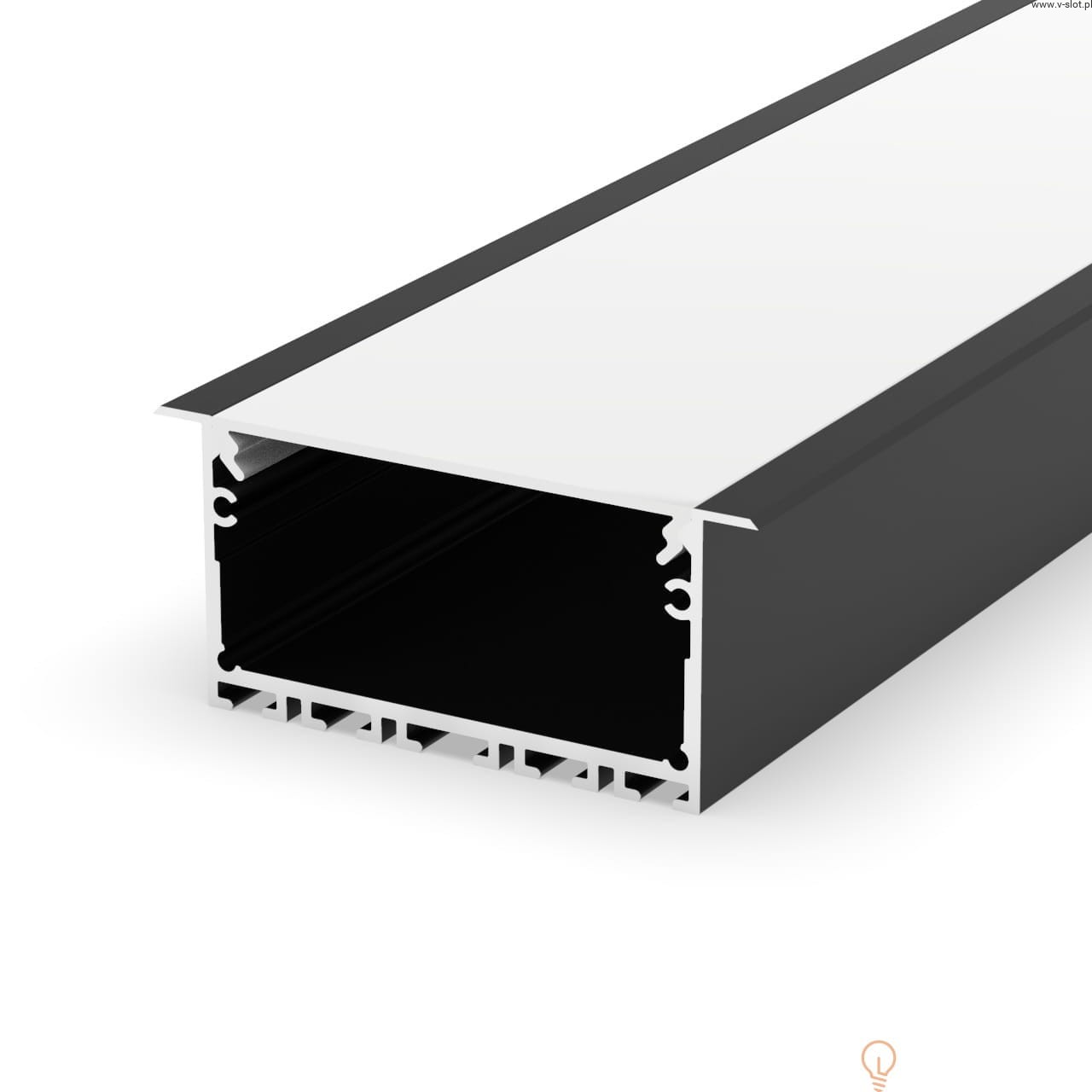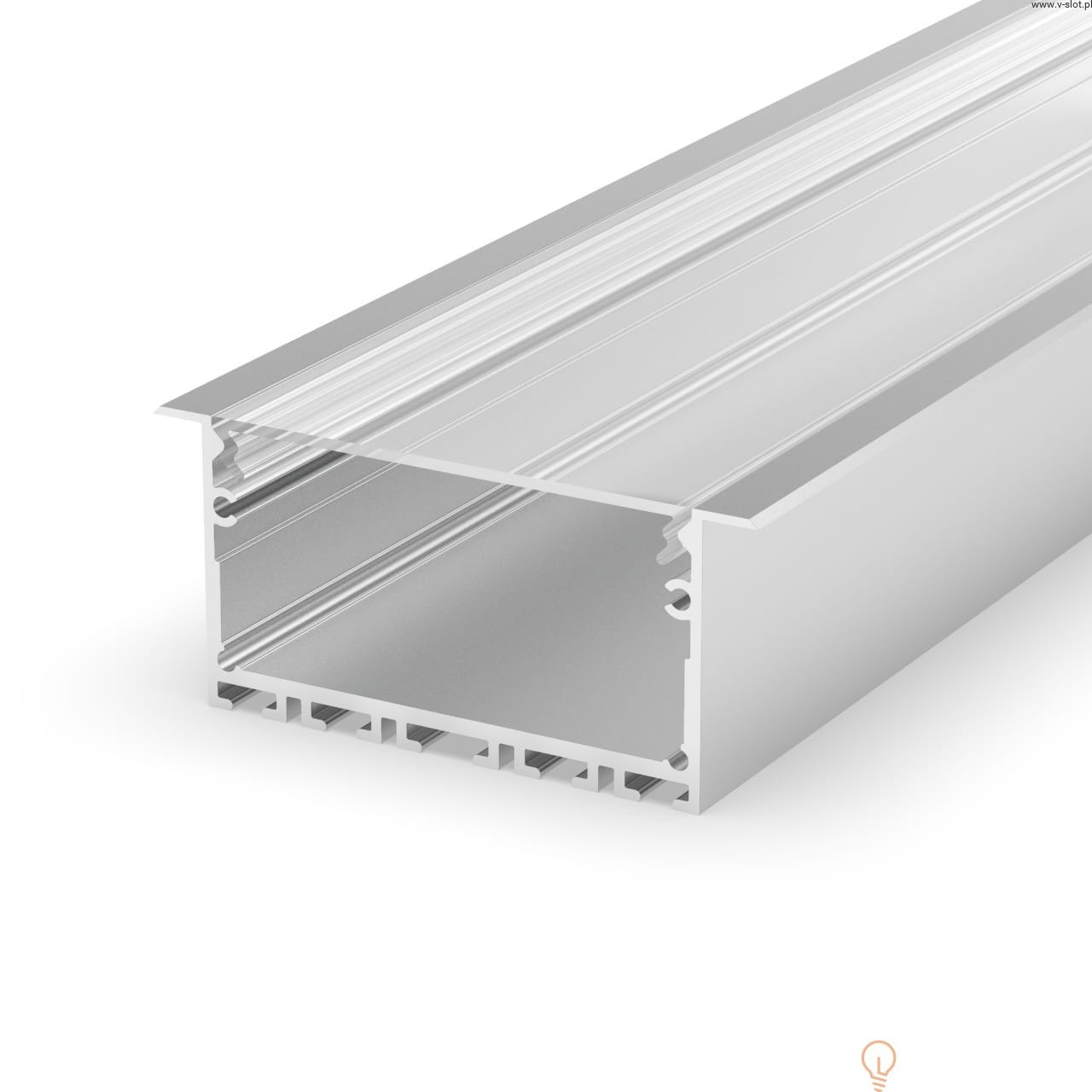Profil architektoniczny P23-1 jest przeznaczony do wpuszczania w wyfrezowane lub wycięte otwory. Może zostać użyty w dowolnej powierzchni (GK, płyty meblowe, ściany, sufity, itp.), a estetyczne skrzydełka kompletnie zasłonią krawędzie otworu. Mieści 4-5 taśm LED i doskonale sprawdza się do tworzenia złożonych opraw świetlnych w budynkach komercyjnych lub w domu. Budowa profilu oraz osłonka z poliwęglanu (PC) pozwala uzyskać jednolitą linię światła na całej powierzchni (dot’s free).