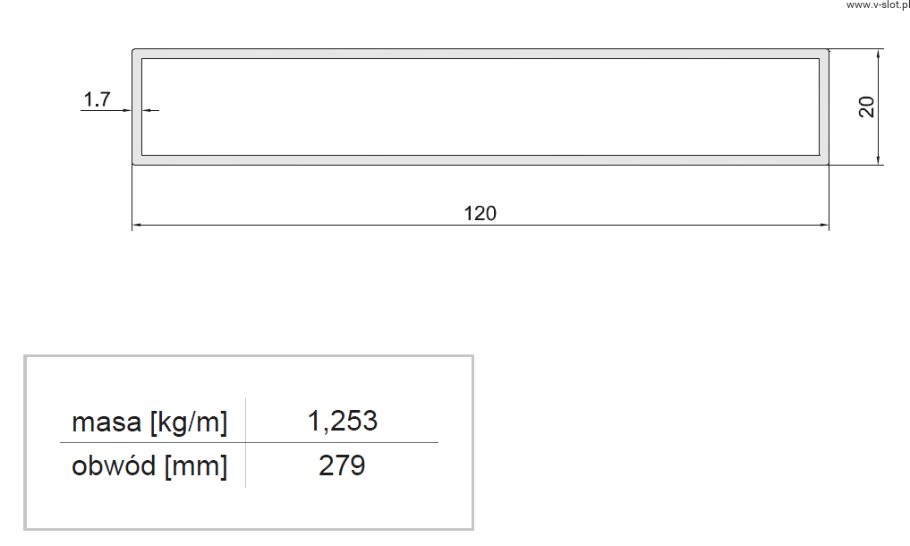 Profil aluminiowy rura prostokątna 120x20x1.7 - V-SLOT