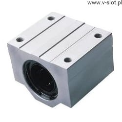 Łożyska liniowe w obudowie aluminiowej, anodowanej z gwintowanymi otworami montażowymi. Obudowa posiada cztery nagwintowane otwory montażowe.