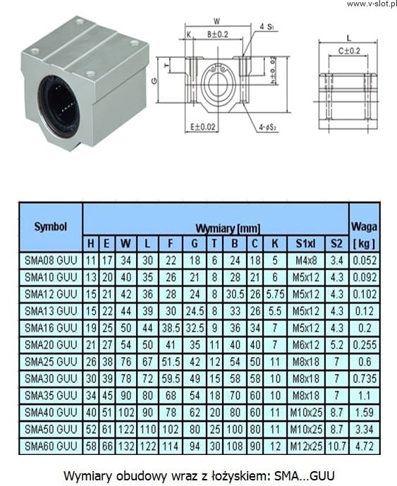 SMA6GUU ŁOŻYSKO LINIOWE W OBUDOWIE