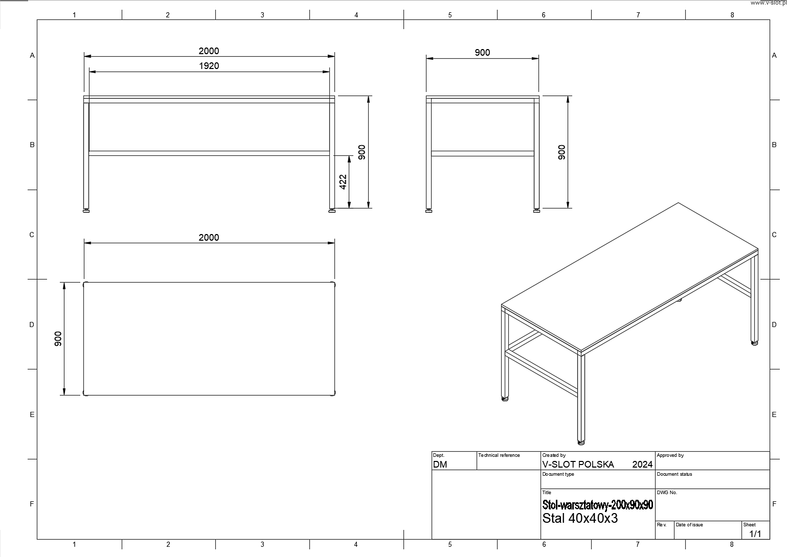 - Wytrzymała konstrukcja: Stalowe profile o przekroju 40x40x3 mm zapewniają stabilność i wytrzymałość, co jest kluczowe w wymagających warunkach przemysłowych.
