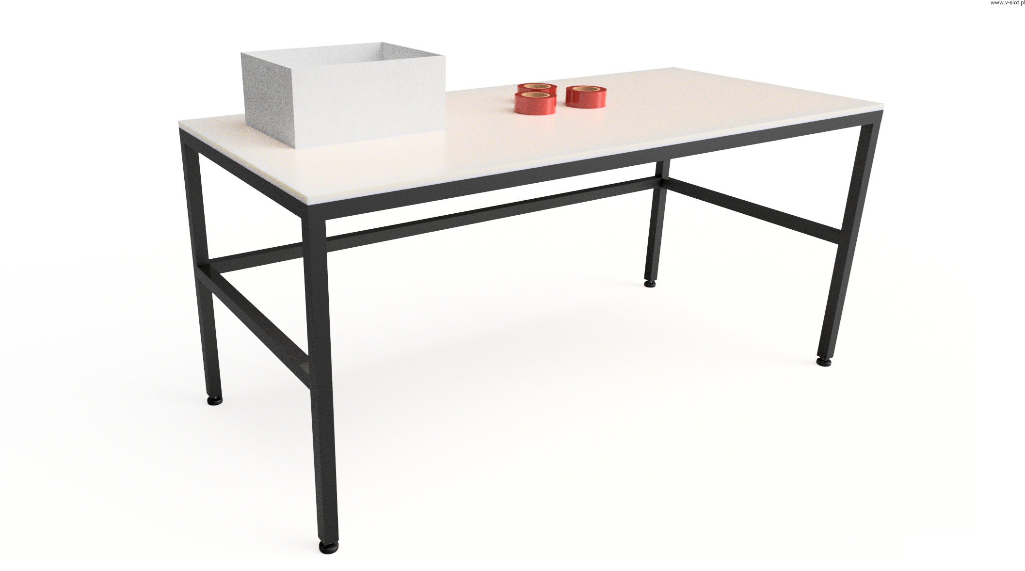 - Stół wyposażony w 4 stopki z możliwością regulacji wysokości, co pozwala na idealne dopasowanie do powierzchni roboczej.