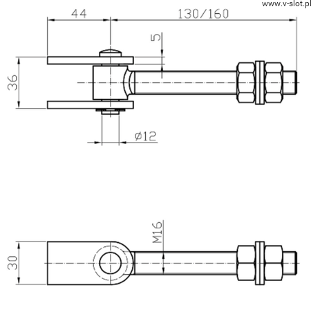 Zawias regulowany do przykręcenia M16 L-130 z jarzmem dzielonym