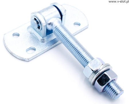 Zawias stalowy regulowany M16 ocynkowany do bram i furtek z szyldem 115x50x5 L-130 z otworami montażowymi w kształcie fasolek.