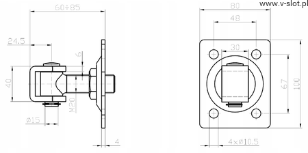 Zawias regulowany do przykręcenia M20 z szyldem 100x80x4 mm