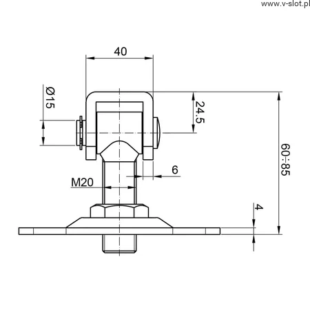 Zawias regulowany do przykręcenia M20 z szyldem 120x75x4 mm z otworami w kształcie fasoli