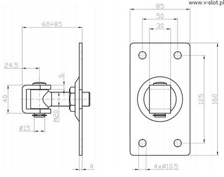 Zawias regulowany do przykręcenia M20 z szyldem 160x85x4 mm