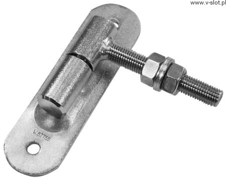 Zawias stalowy regulowany toczony M12 Fi24 ocynkowany do bram i furtek z szyldem 150x40x4.