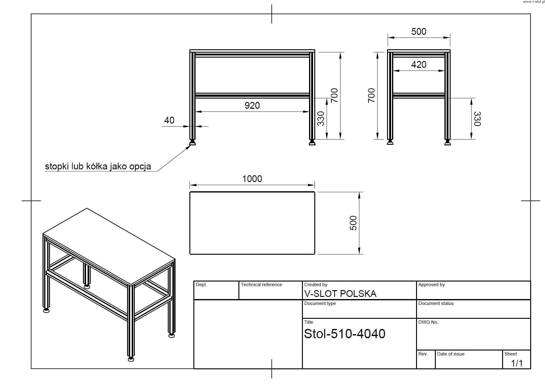 Stół roboczy z profili aluminiowych 500x1000mm